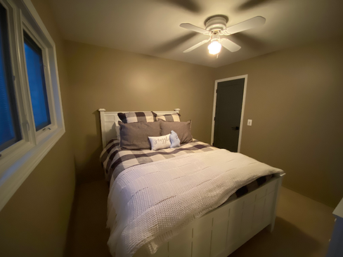 For the past 2 years, I squeezed in the small exercise room we built when we finished a portion of our basement. It was the best solution at the time, but as my storage needs are growing, I needed a better solution. Not to mention, being in the basement with zero daylight (and it is always so stinkin‘ cold in my basement) is so depressing. My previous career, running distribution centers kept me inside a warehouse all day never seeing the light of day - and I HATED it!! I am someone who loves the sunshine pouring in (or a lot of times the gray clouds… I am in Michigan). You can see my makeshift office - I spent zero money on it and even kept the lime green wall we painted for the exercise room! I even threw a bean bag chair in there to give me a spot to stretch out, but that was quickly taken over by my pup as his favorite spot. It was less than ideal, to say the least.